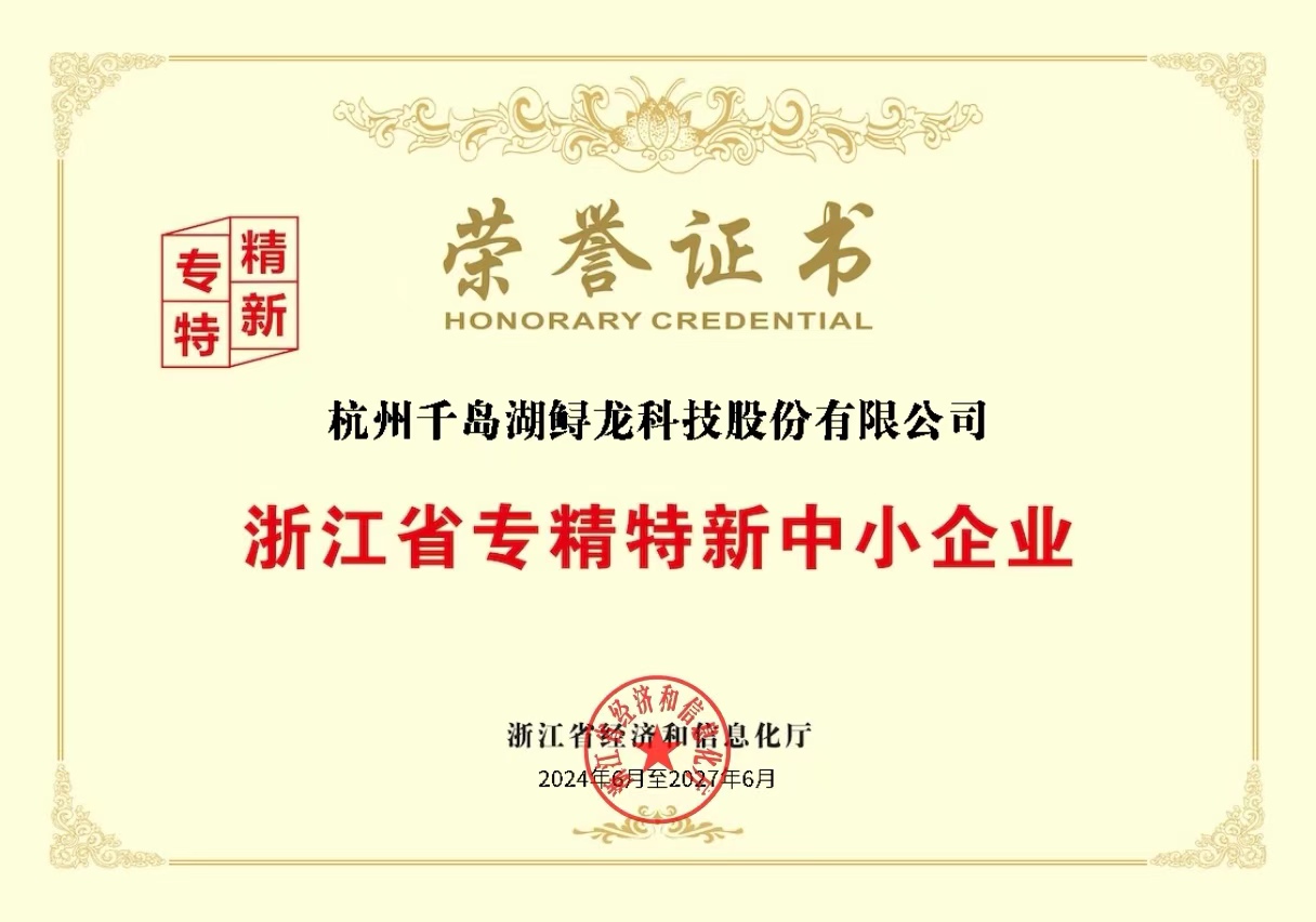 近日,杭州市经济和信息化局发布2024年第一批浙江省“专精特新”中小企业名单,经过层层严格筛选和评审,杭州千岛湖鲟龙科技股份有限公司凭借其在技术创新、产品特色、精细化管理以及专业化服务等方面的卓越表现,成功荣获浙...